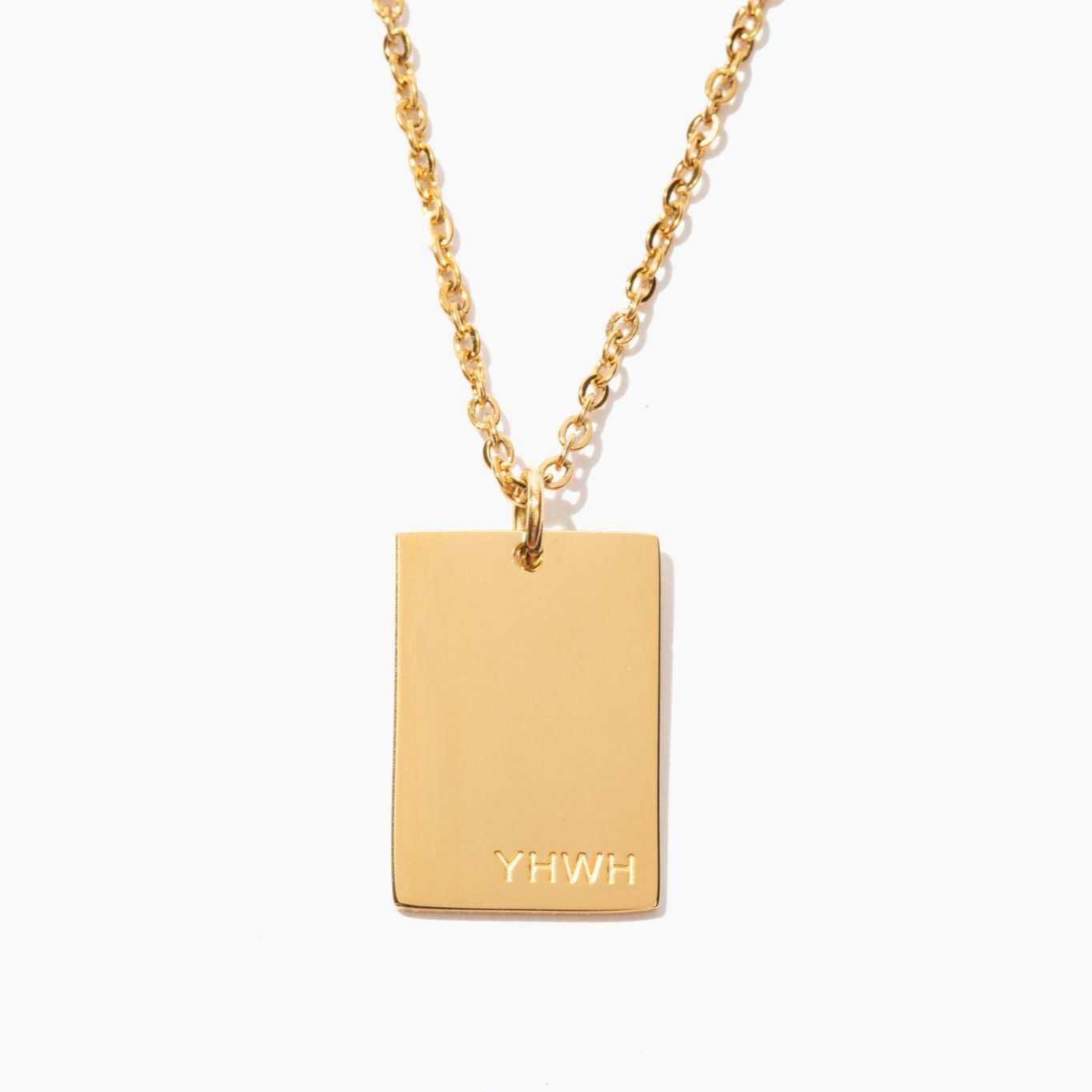 Elevate your style with our stunning YHWH Necklace, a symbol of faith and devotion. Crafted with meticulous attention to detail, this minimalist yet impactful necklace features a rectangular pendant plated in radiant gold. Emblazoned on the pendant is the sacred name “YHWH”, representing the Hebrew name of God. This timeless piece serves as a powerful reminder of divine presence and protection in every moment of your life.